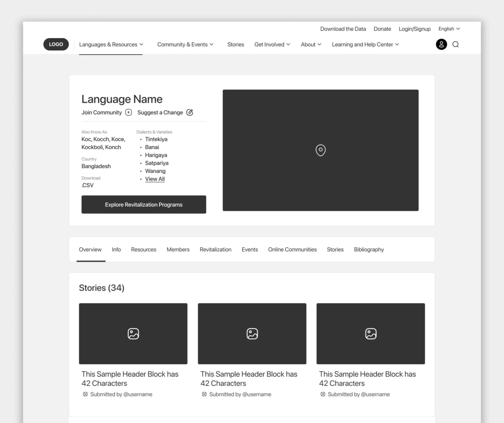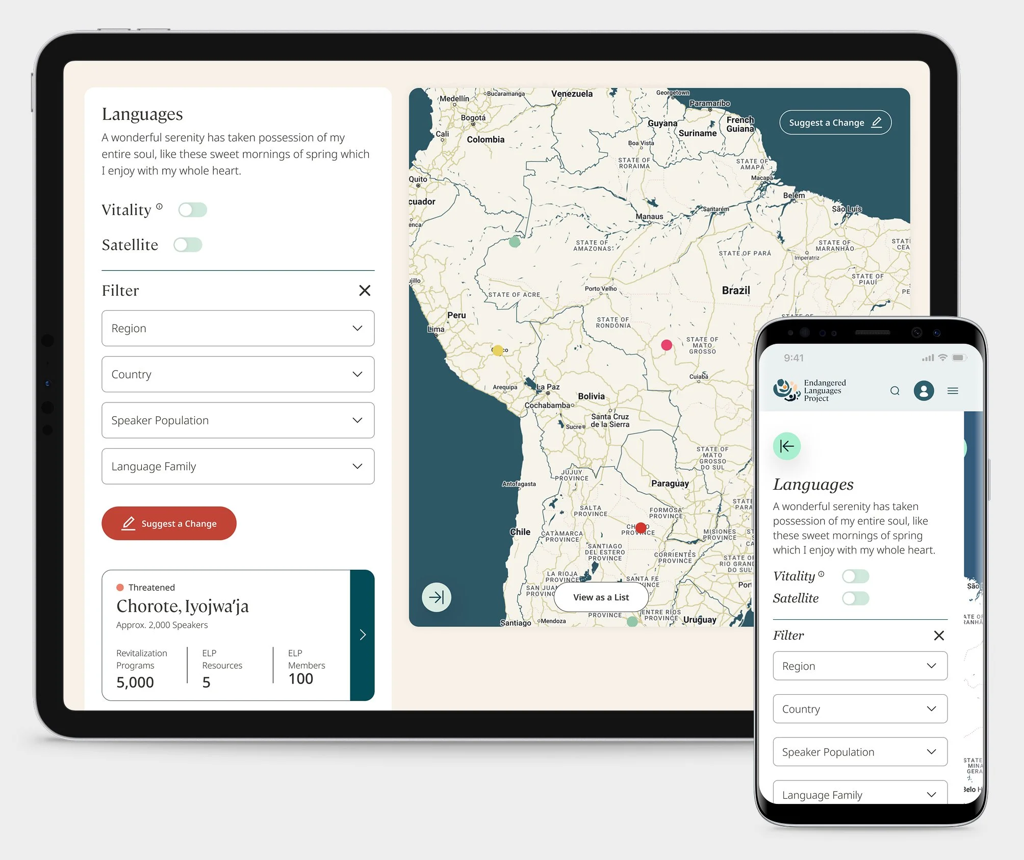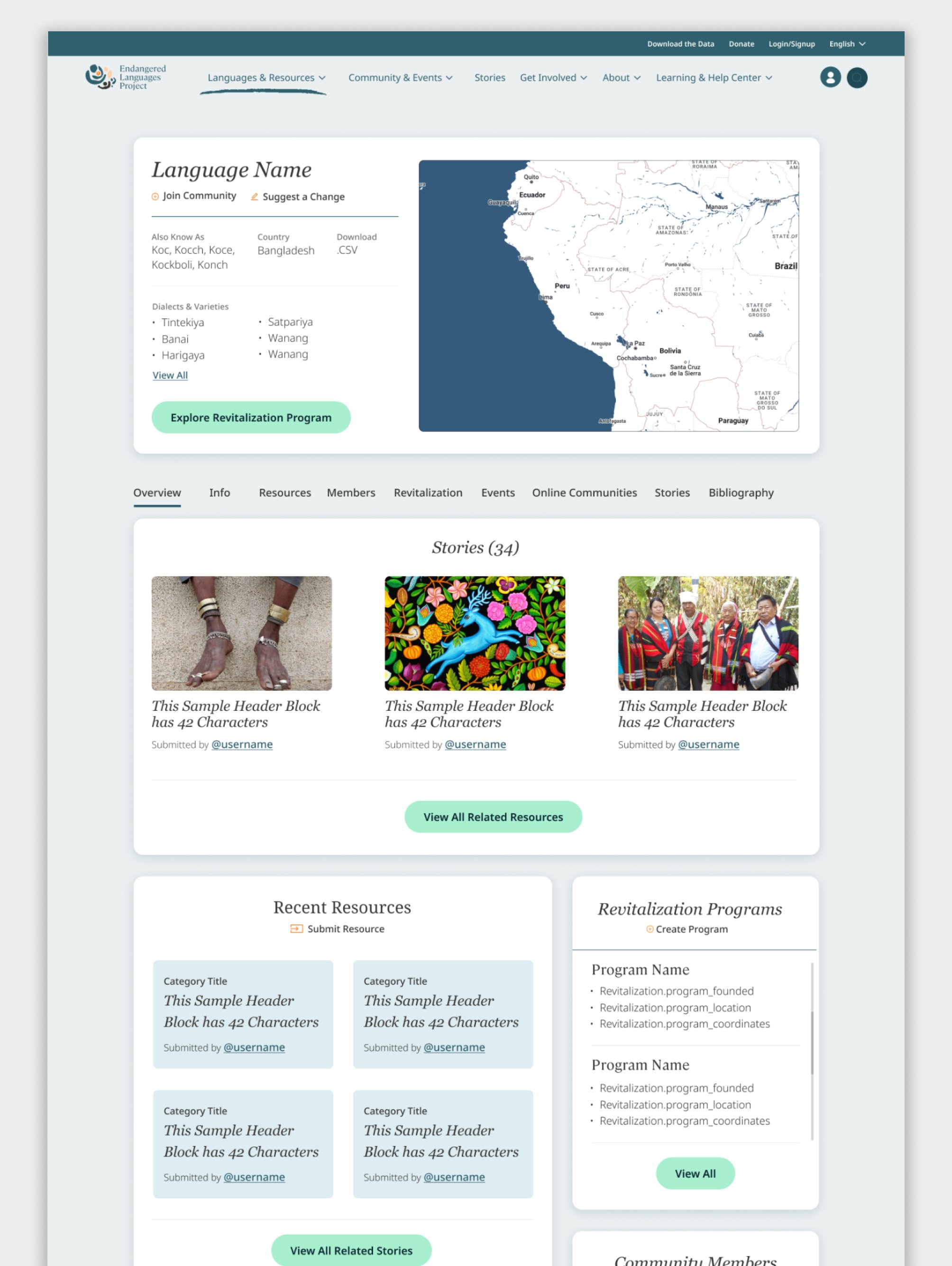 After ELP parted ways with another agency, I worked with them to pick up and expand upon where the other agency left off and create a platform that helps people form networks and share research to sustain language diversity worldwide. They hoped to create a refreshed experience from their old website and enhance the space they have created for champions of language preservation.
